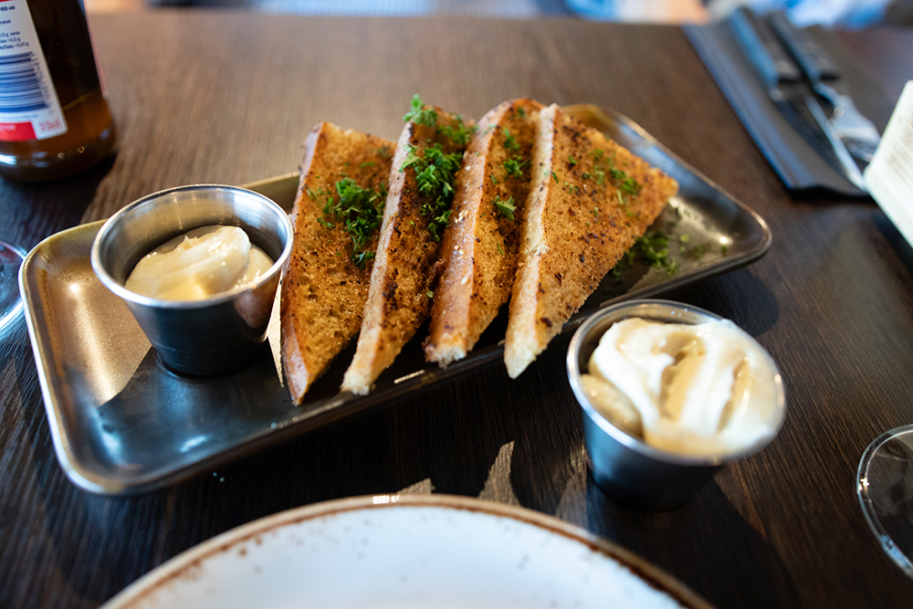 Till förrätt så beställde vi in deras vitlöksbröd som är så jäkla amazing! Alla som äter detta vitlöksbrödet säger att det är de bästa som de någonsin har ätit och jag kan bara hålla med! Sen tog vi också in deras toastskagen som jag och Johan delade på, samt deras sidfläsk. Något som jag måste berömma Buddys för, förutom de goda smakerna så är portionerna riktigt bra. Allt är så prisvärt!